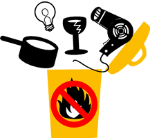 - glass products (mirrors, fluorescent light bulbs) etc
