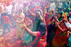 従来は豊作祈願のお祭りだったようですが、各地の悪魔払いの伝説が混ざって現在に至っているようです。お祭りは2日間に渡って行われますが、色かけ祭は2日目に開催されます。この日は他のヒンドゥー教のお祭りと違い、誰でも参加することができ、この日は身分に関わらず無礼講となり街中が大騒ぎになります。