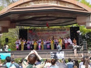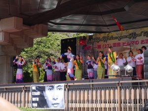 ミャンマーの歌や踊りが披露され、ミャンマー料理の屋台も出ており