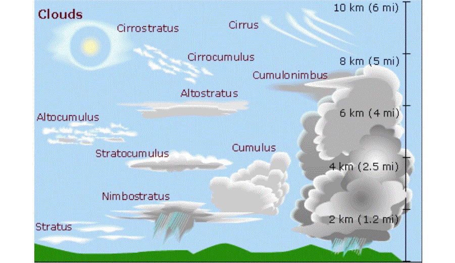 Yes. It is true that we can decide if an umbrella will be necessary or not, by just watching the sky and observe the clouds.They are in general 10 types of clouds, showing in the sky from high to low level.