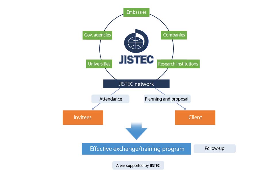 Planning and proposal based on JISTEC’s networkJISTEC has built and maintained a broad network across universities, research institutions, embassies and other organizations, through its experience in conducting exchange programs for nearly 30 years.